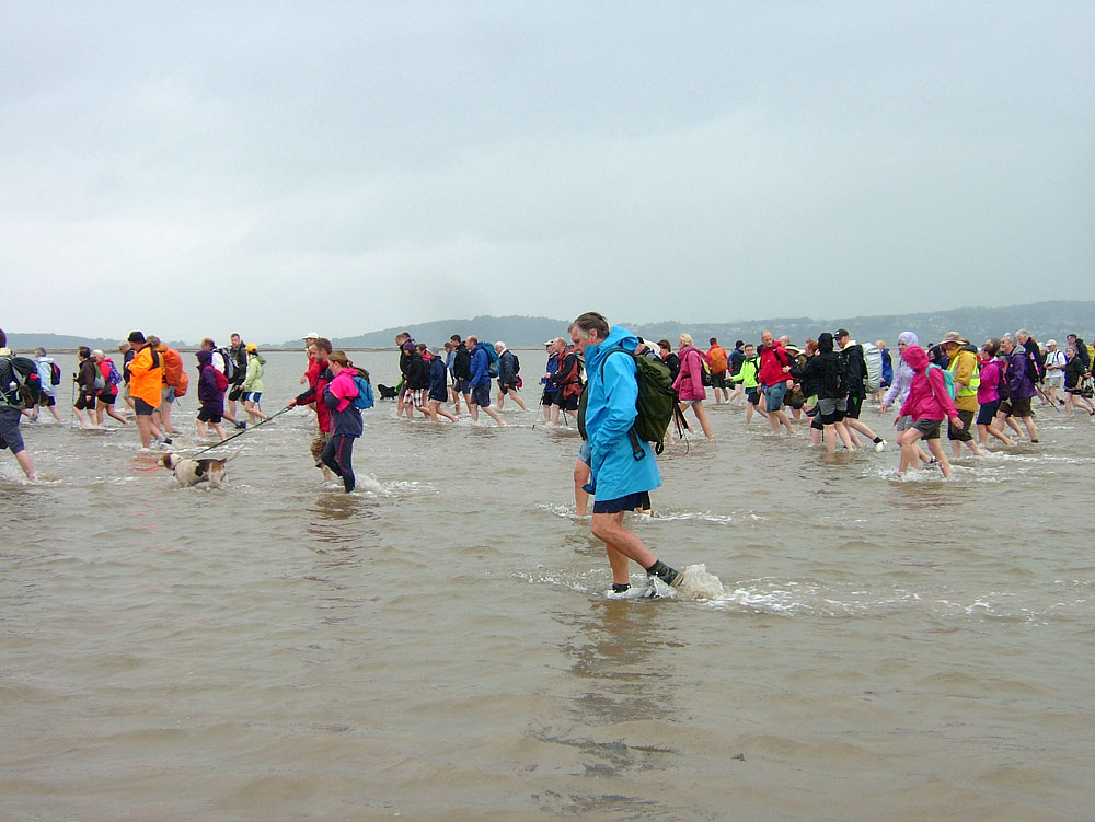 Cedric has been safely guiding folk across the bay for many years and lives in a cottage in Grange-over-Sands owned by the Crown (no, not the pub!). He isn’t duty-bound to guide any public walks but is contracted to guide the Queen and people nominated by the Queen. Most of the public walks led by Cedric are charity fund-raising events. Our walk will be with a few hundred other bay walkers and we’ll cover eight miles in about three hours. There is no fixed route across the bay, the moving channels determine the course which will be different on every crossing. The walk starts in Arnside and finishes at Kents Bank train station. If you were to walk in a straight line the distance would be four miles, so that gives you an idea of the meandering eight mile route that is needed to cross safely!